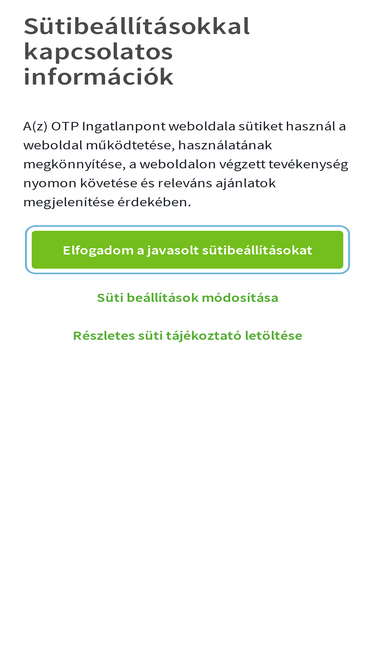 77%az otp ingatlanpont magyarországon egyedülálló módon ötvözi az ingatlan- és a banki szakértelmet. az ország egyik legjelentősebb ingatlanközvetítőjeként megbízható megoldást nyújtunk ügyfeleinknek az ingatlan adásvétel folyamatában és a hitelügyintézés során. kínálatunkban több mint 10.000 ingatlan szerepel, aminek meghatározó része kizárólag rajtunk keresztül érhető el.