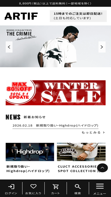 98%ARTIFは岐阜に店舗を設けており、20代から40代の個性を大切にするストリートファッションのオンラインショップです。CALEE、CHALLENGER、SOFTMACHINEなど、ライフスタイルにリンクしたブランドのアイテムを幅広く取り揃えています。音楽やバイクにインスピレーションを受けトレンドを先取りするファッションをメインに、2000点以上のアイテムをお取り扱いしております。