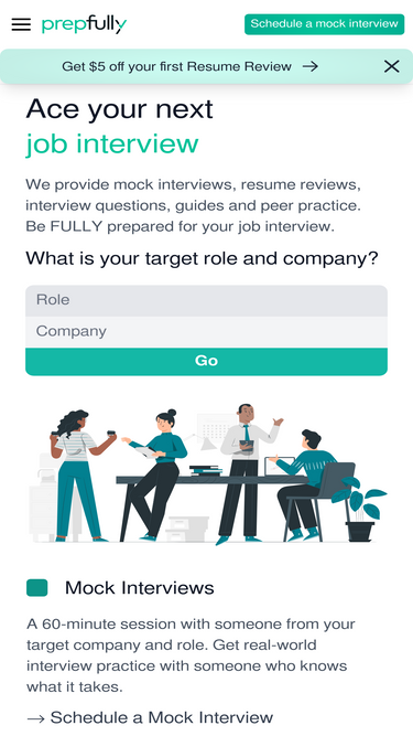 82%Prepfully is a one-stop shop for all your interview preparation. Interview guides. Question banks. Real-world practice interviews. Expert advice.