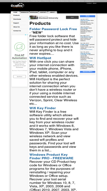77%gear box computers provides freeware software downloads such as wifi hotspot, wifi key finder, windows product key finder, folder vault folder lock-ing, hide and encrypt files and folders security, internet access controller blocks and filters websites. ip watcher monitors your public and local ip address. downloads and software from gear box computers. software titles that are tested, rated, reviewed and ready to download free. download destination for windows, freeware, shareware, and demos. download utilities, software