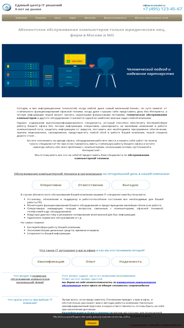 63%компания «сервисмобиль» на протяжении 9 лет занимается комплексным абонентским обслуживанием компьютеров. нам доверяют более 100 юридических организаций в москве и московской области. за это время мы научились находить взаимопонимание с нашими партнёрами.