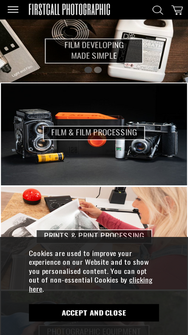 Firstcall Photographic offers over 30 years of expertise in analogue and digital photography. Shop film, darkroom supplies, studio equipment, and more. Fast UK & worldwide shipping, expert advice, and a free catalogue. Discover specialist products backed by unrivalled knowledge and friendly customer service.