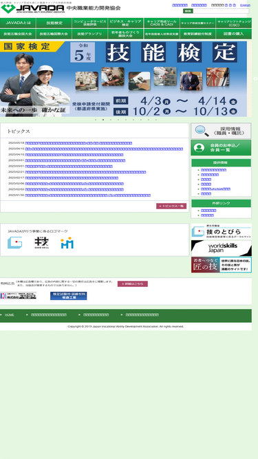職業能力評価の専門機関。国家資格「技能検定」をはじめとする各種資格試験の実施や、「技能五輪大会」「技能グランプリ」等の競技大会、様々なセミナー・相談援助を行っています。