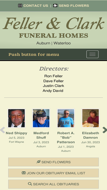 Auburn Location - Feller & Clark Funeral Home offers a variety of funeral services, from traditional funerals to competitively priced cremations, serving Auburn, IN, Waterloo, IN and the surrounding communities. We also offer funeral pre-planning and carry a wide selection of caskets, vaults, urns and burial containers.
