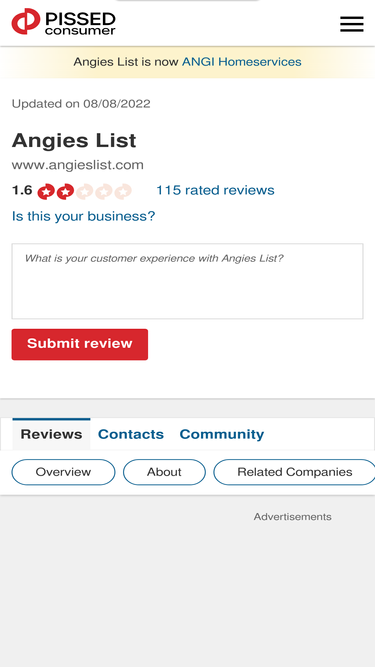 Angies List review from West Palm Beach, Florida with 137 Comments: Angie's List is a scam. After your company gets added they contact you and tell you that your company has been added and reviewed.
