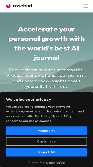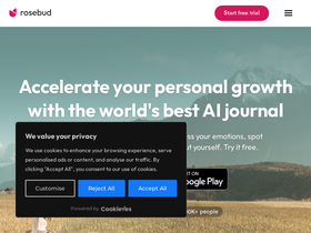 89%Rosebud is an AI journal that adapts to you. Write or speak your thoughts, discover patterns, and gain clarity through personalized reflection prompts.