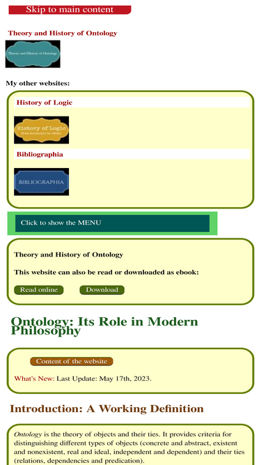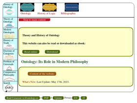 92%ontology in contemporary philosophy, its historical relationship with metaphysics and logic, bibliographies on ontological topics