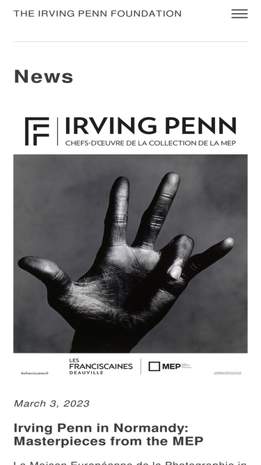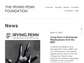 87%Official website of The Irving Penn Foundation, with background information on the life and career of photographer Irving Penn. Includes images, biography, chronology, exhibition list, bibliography, and news.