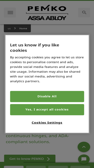 27%PEMKO Products Company is an ASSA ABLOY product line that manufactures & designs high quality architectural hinges for commercial use.