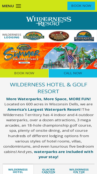 100%Wilderness Resort - Wisconsin Dells, Wisconsin. Here's to the family, here's to the Wilderness! 4 indoor and 4 outdoor waterparks!