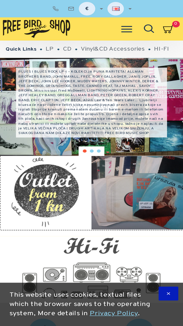 100%Free Bird postoji od 1994. godine i uvjerljivo je najveća trgovina pločama i drugim nosačima zvuka u Hrvatskoj, a i šire. U svom asortimanu uvijek ima oko 80 000, uglavnom second hand, ali I novih, gramofonskih ploča CD-a, DVD-a, memorabilije, te Hi-Fi komponenta i ostalih glazbenih aparata, kao i velik izbor svih stvari koje trebaju kolekcionarima glazbe, poput igala za gramofon, zaštitnih omota, četkica, sprejeva I dr.