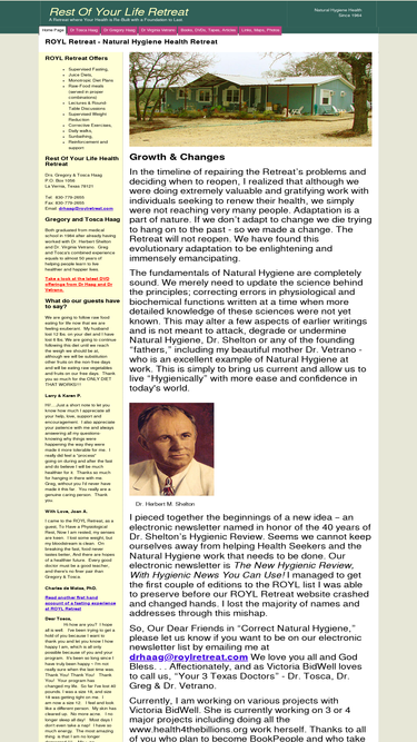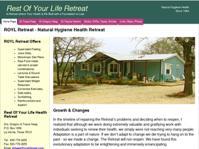 at royl health retreat the client is guided back to good health, not through treatment, but by providing the health information and conditions essential to the efficient operations of the body's own forces, allowing it time for recuperation, rest and repair.