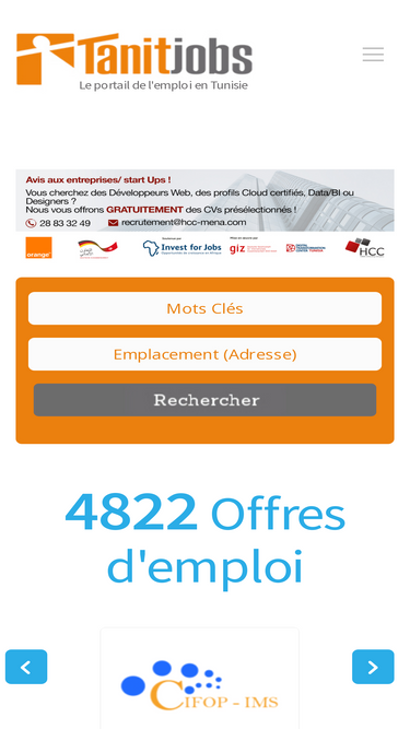 offres d'emploi et de formation en tunisie: candidats trouver un travail, poster cv. centre d'appel, industrie, services, commerce, informatique, recherche d'emploi, bureau de recrutement et agence d'offre d'emploi, de travail et de formations en tunisie, tanitjobs répond aux besoins des candidats comme des employeurs.