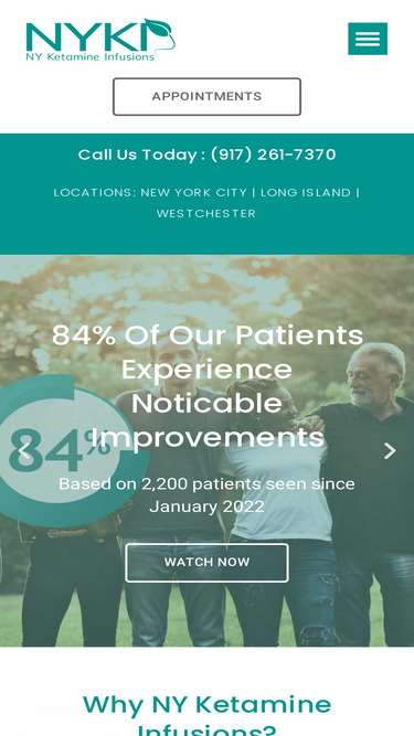 87%Over the past six years, NY Ketamine Infusions has administered ketamine treatments to more than 3,000 patients. Contact us today to learn more!
