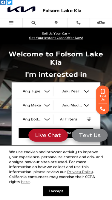84%welcome to folsom lake kia in folsom, ca! check out our new & used kia inventory or acquaint yourself with our parts, service, or finance departments.