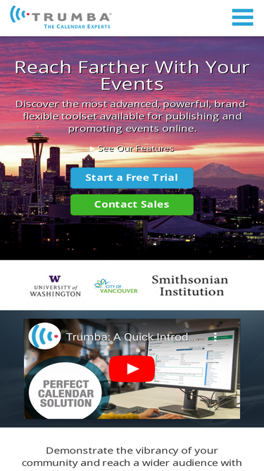 84%trumba offers web-hosted event calendar software for publishing online, interactive, calendars of events.