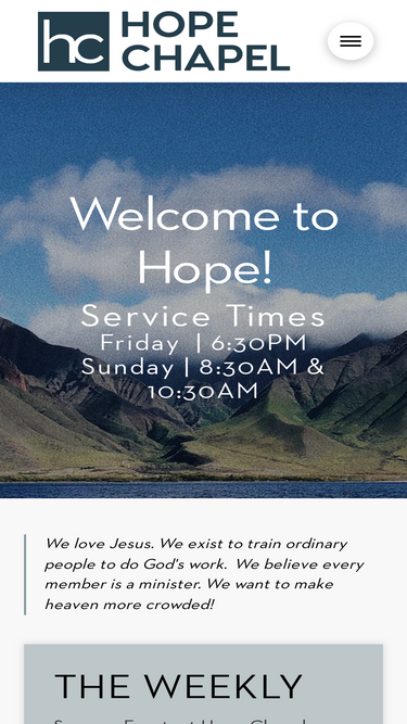 86%Welcome to Hope! Service Times Friday | 6:30PM Sunday | 8:30AM & 10:30AM We love Jesus. We exist to train ordinary people to do God's work. We believe every member is a minister. We want to make heaven more crowded!THE WEEKLY Join us for Easter Buy a quart of Chow-Fun this weekend to support our