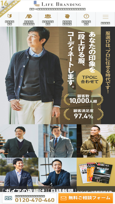 83%パーソナルスタイリストメンズ専門のパイオニア、ライフブランディングは30代、40代に大人気!パーソナルスタイリストがプライベートや仕事などの各シーンに合わせて最適な服装をご提案。ガイアの夜明けや日経ビジネス等メディア実績多数。