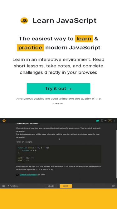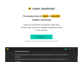 learn javascript is the easiest, most interactive way to learn & practice modern javascript online. read short lessons, solve challenges & answer flashcards.