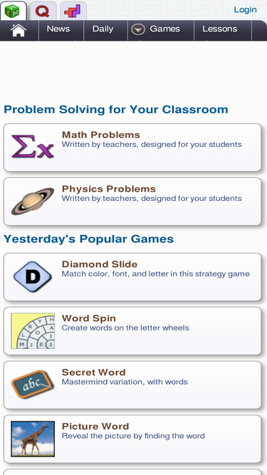 problem solving and educational games - solve problems, brainteasers and puzzles, and play educational games at the problem site
