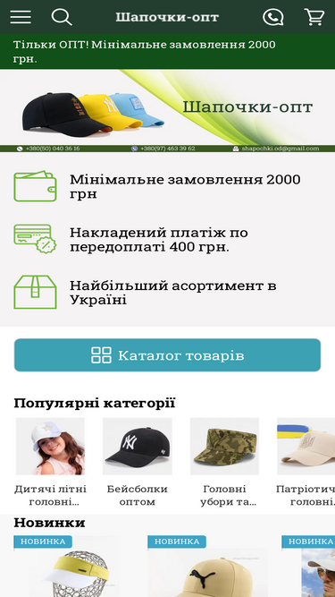 95%Найбільший асортимент головних уборів в Україні. Дрібний та великий опт.