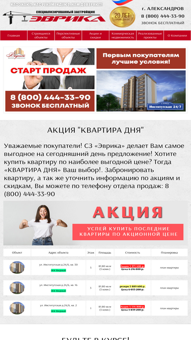 100%строительная компания эврика - продажа квартир в новостройках города александрова владимирской области, элитные квартиры в александрове, квартира в кредит (ипотеку) в новом доме. однокомнатные, двухкомнатные, трехкомнатные квартиры, квартиры в александрове, недвижимость александров. предложения александров. новостройки александров. звоните 8 (906) 563-99-66; 8 (905) 615-55-59; 8 (49244) 3-07-90