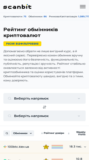 93%рейтинг криптобмінників в україні. дізнайтесь, де купити криптовалюту через рейтинг обмінників криптовалют scanbit