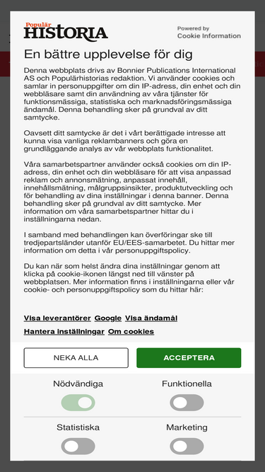 79%Sedan 1991 berättar tidningen Populär Historia om fascinerande händelser och personer, från forntid till folkhem.