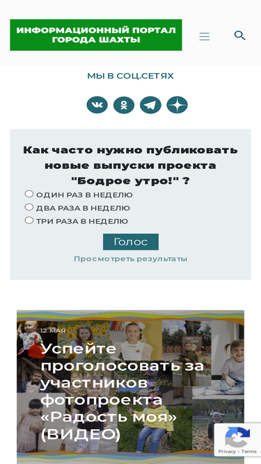 87%Здесь всё, что вы хотите знать о жизни Шахт и Шахтинского района. Новости, статьи, сюжеты о жителях города и региона.