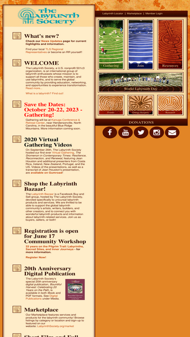 100%The Labyrinth Society supports all those who create, maintain, and use labyrinths, and serves the global community by providing education, networking, and opportunities to experience transformation.