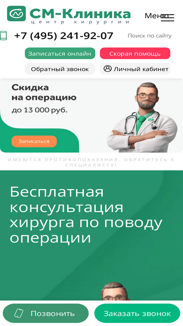 100%В клиническом центре хирургии проводятся высокотехнологичные операции по всем направлениям общей хирургии в Москве. Консультации лучших хирургов – запись по телефону. Круглосуточная платная хирургия в отделениях Центра хирургии «СМ-Клиника».