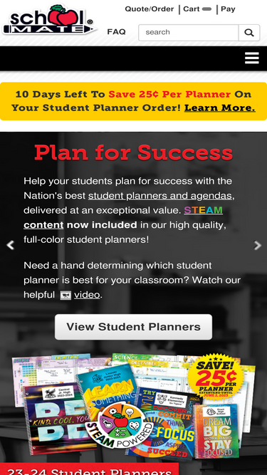 85%school mate is committed to providing the highest-quality full-color student planners, student agendas, and school folders at an exceptional value. we also offer a variety of classroom supplies, books, and folders.