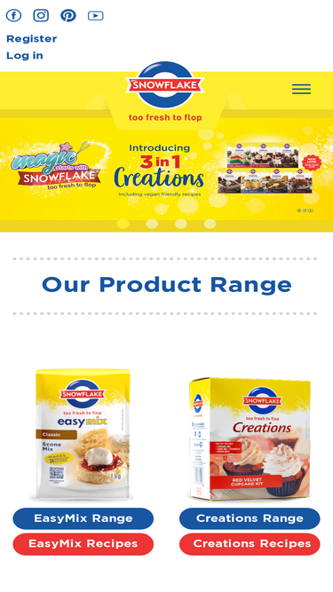 86%baking has never been simpler than with snowflake. with flop-proof baking essentials and piece-of-cake premixes to whip up bakes in minutes.