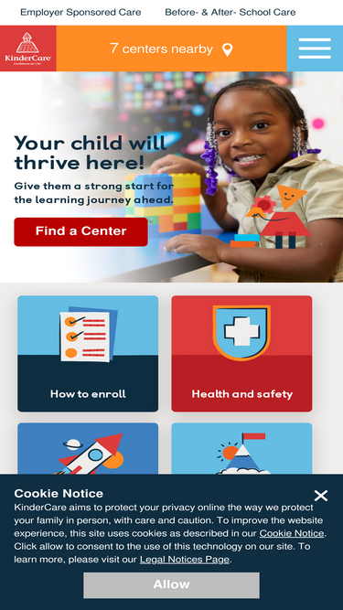 100%kindercare local day care centers offer year-round child care and early childhood education for kids ages 0-12. search for a convenient center near you!