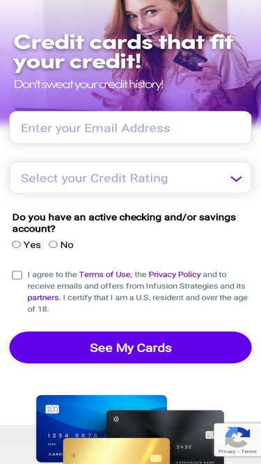 mycreditcardfinder matches you with the best credit cards for your credit. it is absolutely free to have cards picked specifically for you! see your matches in seconds.