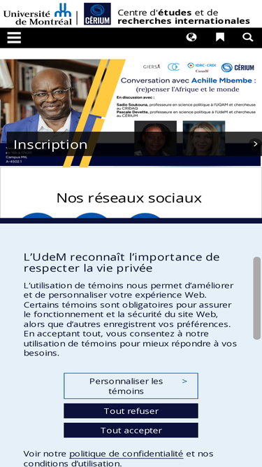 le centre d’études et de recherches internationales (cérium) a pour mission de favoriser le développement des connaissances sur les questions internationales. cette mission s’accomplit à travers des activités de recherche, de formation et de rayonnement.