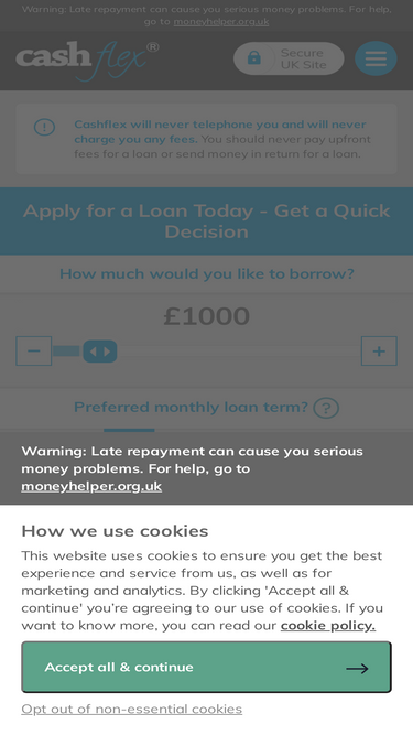 join more than 1 million others who have applied with cashflex® and you could have your cash in minutes! apply for £100 to £10,000 over 3 to 60 months and get your instant online decision today.