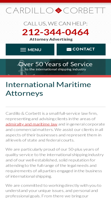 100%maritime law issue in new york or internationally? call cardillo & corbett for an initial consultation at 212-344-0464.