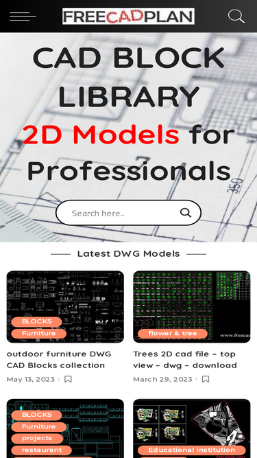 63%Portal de descarga gratis de cientos de bloques AutoCAD (CAD Blocks) en formato .dwg, ordenados en categorías de arquitectura e ingeniería.