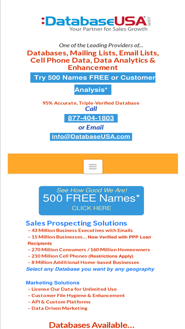60%DatabaseUSA.com® offers one of the most accurate & up-to-date Professional Mailing Lists available. Reach CEO's, Licensed Professionals and more!