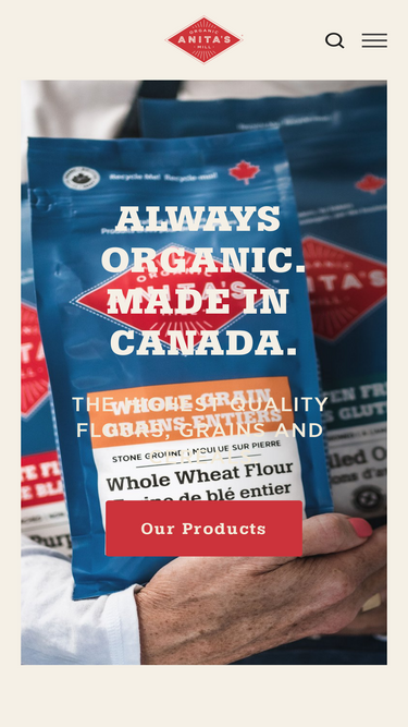 94%Anita's Organic Mill: Flours, Grains and Cereals. Always Organic. Made in Canada.