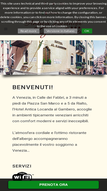 En Venecia, en Calle dei Fabbri, a 3 minutos a pie de Piazza San Marco y a 5 de Rialto, el Hotel Antica Locanda al Gambero acoge a sus huéspedes en ambientes típicamente venecianos enriquecidos con comodidades modernas y servicios de alta calidad.
