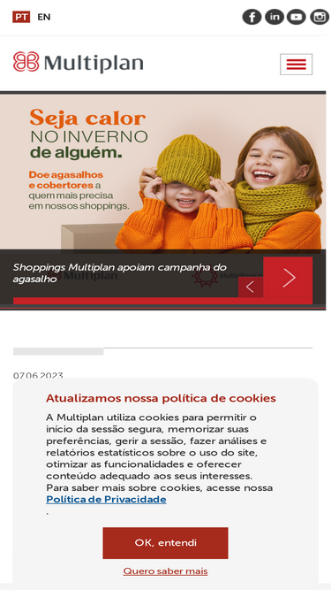 87%Notícias Multiplan: Novidades do Mercado - A Multiplan e o ParkShoppingBarigüi doaram cerca de R$ 90 mil para o Instituto TMO, entidade beneficente de acolhimento a transplantados de medula óssea, de Curitiba, do Hospital de Clínicas.