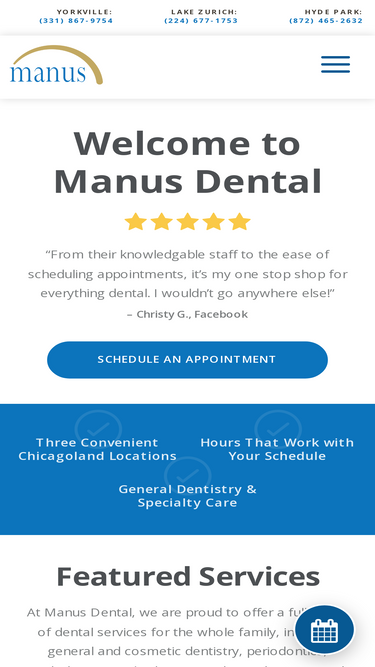 100%Searching for a dentist in Lake Zurich, IL? Manus Dental offers a wide range of professional dental services. Call today to schedule an appointment.
