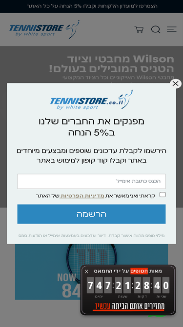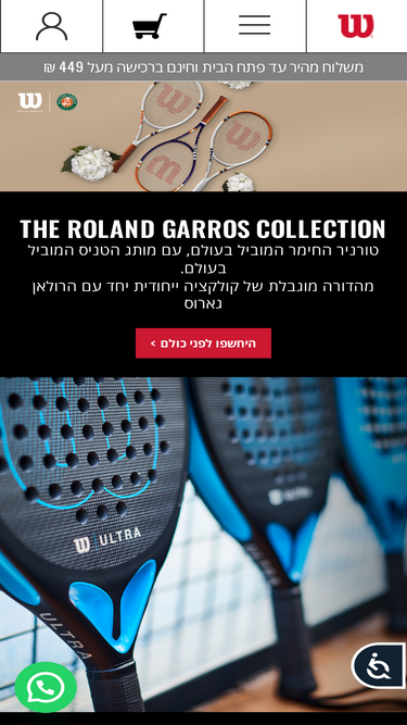 100%מותג הטניס המוביל בעולם Wilson, עכשיו גם בישראל! היכנסו לאתר ותהנו ממבחר גדול של מוצרי טניס באיכות הטובה ביותר בשוק. הרכישה באתר בטוחה ומאובטחת. מחכים לכם בפנים