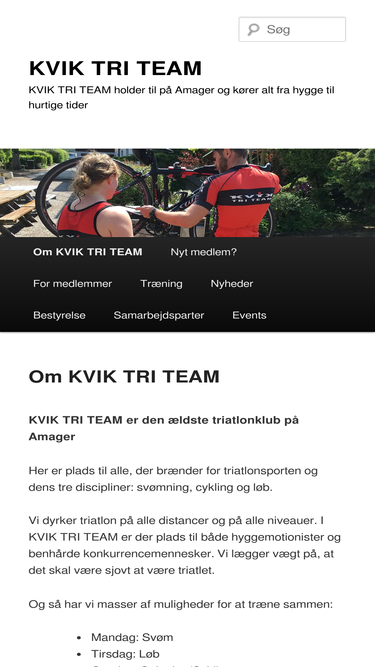 KVIK TRI TEAM er den ældste triatlonklub på Amager Her er plads til alle, der brænder for triatlonsporten og dens tre discipliner: svømning, cykling og løb. Vi dyrker triatlon på alle distancer og på alle niveauer. I KVIK TRI TEAM er der plads til både hyggemotionister og benhårde konkurrencemennesker. Vi lægger vægt på, at det