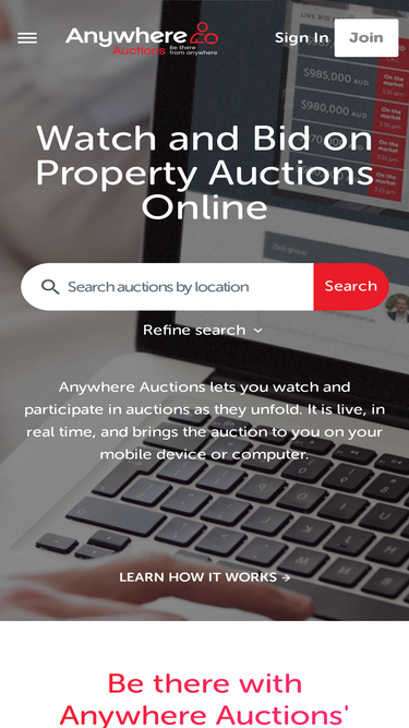 100%anywhere auctions lets you research, watch and bid in property auctions in real time on your phone, tablet or computer. our secure and safe site and apps allow you to live stream property auctions from anywhere in the world, bid on and purchase properties! be part of the future with anywhere auctions!