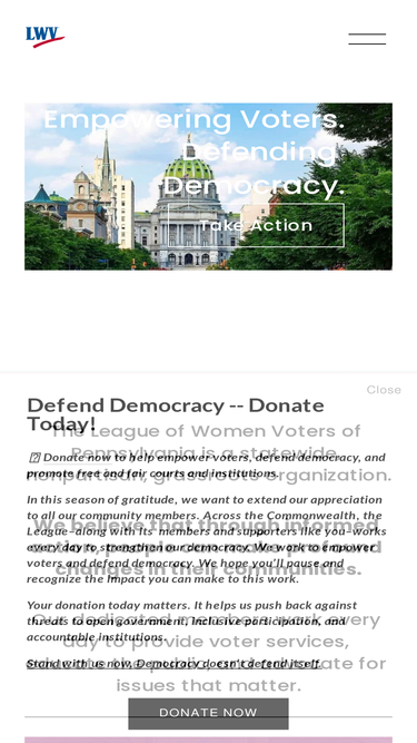 100%The League of Women Voters is a nonpartisan organization whose mission is to encourage the informed and active participation of citizens in government and to influence public policy through education and advocacy.
