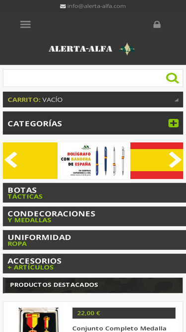 87%Tienda online especializada para militares y policías. Ropa y equipamiento militar, ropa equipamiento policial, accesorios y material táctico online.