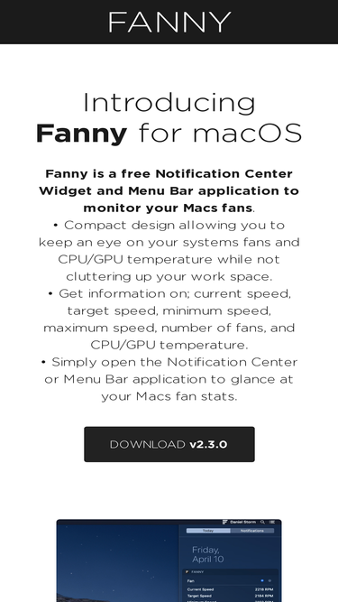 fanny widget - monitor your mac's fan speed and cpu/gpu temperature from your notification center for free